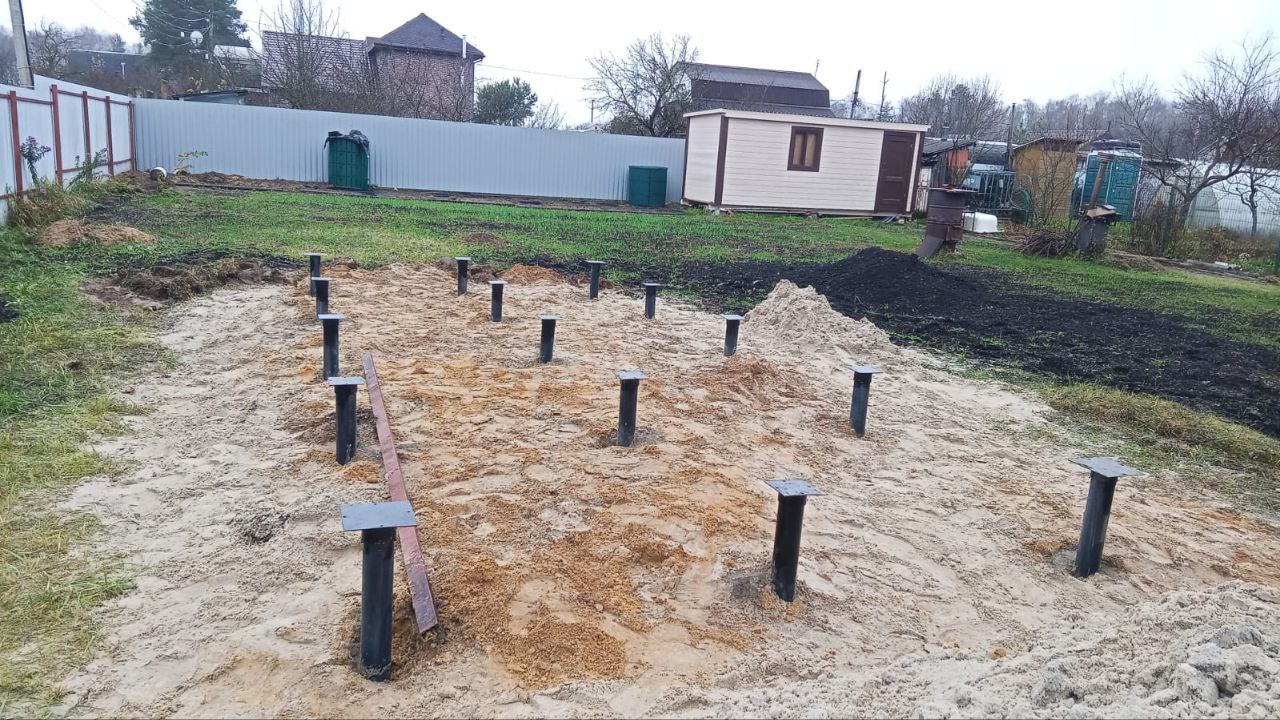 —Закрутили 15 винтовых свай для установки модульной бани